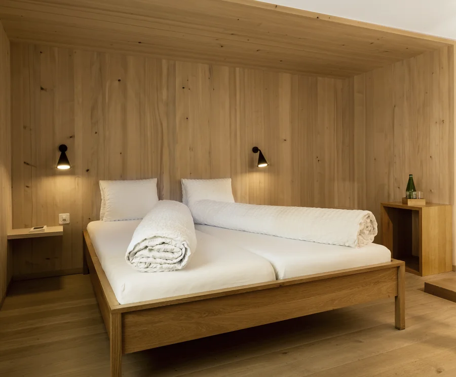 Doch noch ein paar Worte? Gerne. Manche Gäste bezeichnen das Hotel & Gasthaus Alpina in Vals als Design-Hotel, weil es vom renommierten Bündner Architekten Gion A. Caminada renoviert wurde. Andere Gäste bezeichnen das Hotel Alpina als Boutique-Hotel, weil es mit 20 Zimmern klein und fein ist und persönlich geführt wird. Hotellerie Suisse vergibt übrigens drei Sterne.