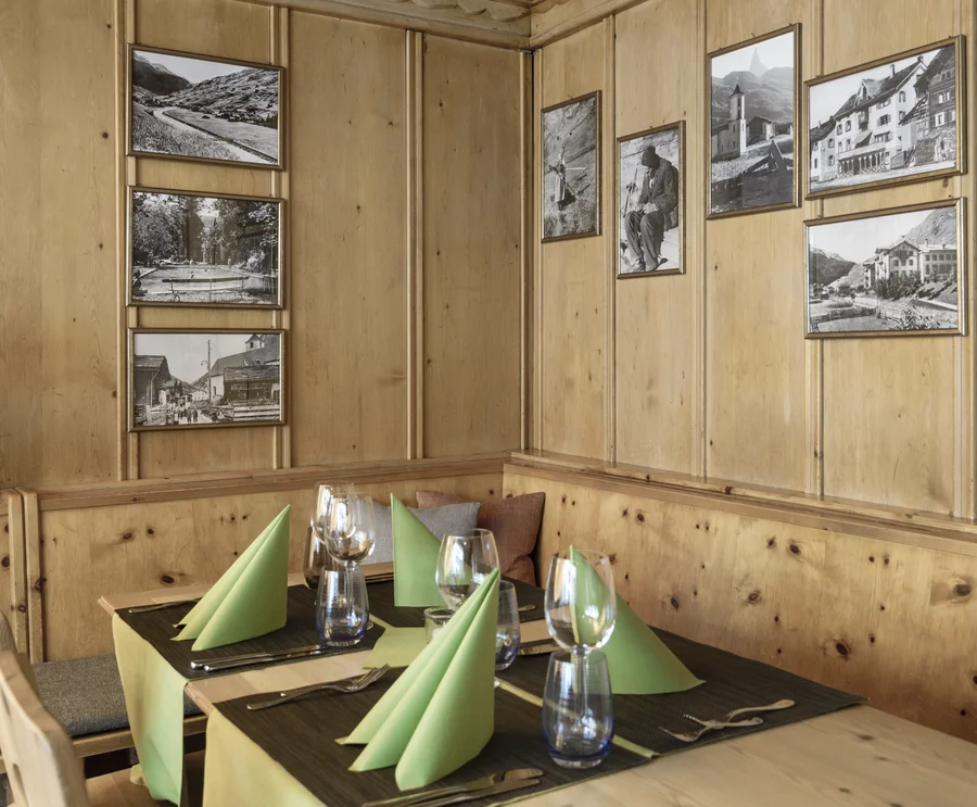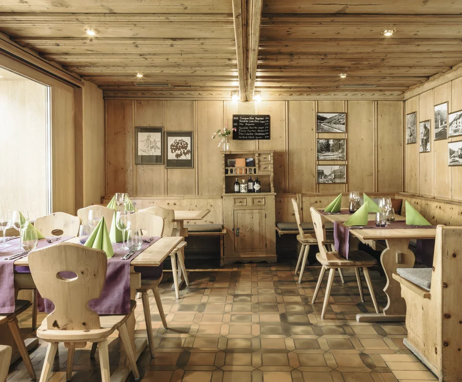 An einem sommerlichen Nachmittag auf dem Dorfplatz von Vals sitzen und in die Sonne blinzeln. Abends in der Hausbeiz essen oder im Restaurant im 1. Stock mit Aussicht auf den Dorfplatz speisen. Dann noch ein Schlummerdrink in der Hotelbar und Gutnacht!