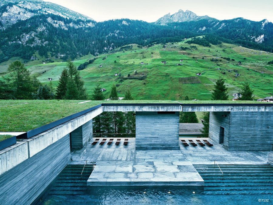 Vals glitzert und gleisst in der Sonne. Weil hier Licht, Wasser und Stein seit Jahrmillionen miteinander sprechen. Diese Natursprache hat einen architektonisch einzigartigen Ausdruck gefunden: die Therme Vals von Peter Zumthor.